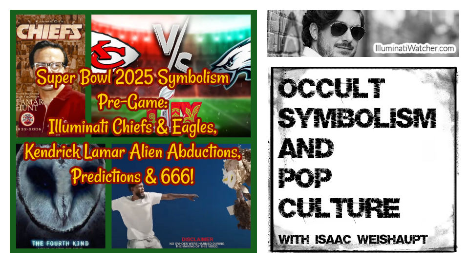 On today’s episode of the Occult Symbolism and Pop Culture with Isaac Weishaupt podcast we do our annual Super Bowl Pre-Game show! We’ll talk about conspiracies and the history of the Kansas City Chiefs and HL Hunt, politics, Philadelphia Eagles symbolism of Phoenix, NFL rigging games conspiracies and the symbolism to expect from the Half-time show with Kendrick Lamar, Jay-Z’s RocNation, Ab-Soul & Aleister Crowley! We’ll talk about Kendrick Lamar’s alien abduction claim, look at his alien lyrics and make some scoring predictions based on the number 666!